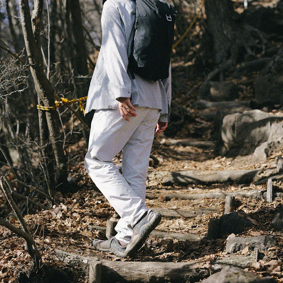 立体裁断はとらないシンプルな構造は、いわゆる”山パンツ感”がなく「山から街…いや仕事まで」をサポートします。Octaのソフトな肌触りの良さも相まって、まさに”週8”で履きたくなるヘビロテ確定のマルチパーパスパンツです。